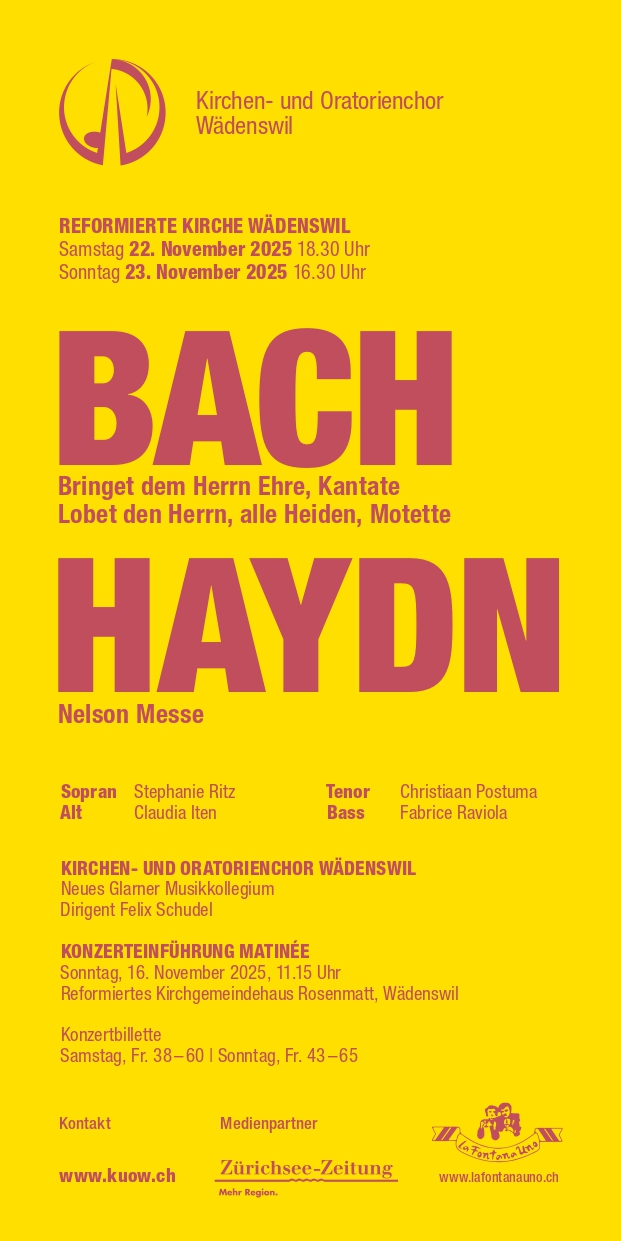 Unter der Leitung von Felix Schudel musizieren der Kirchen- und Oratorienchor Wädenswil und das Neue Glarner Musikkollegium.
