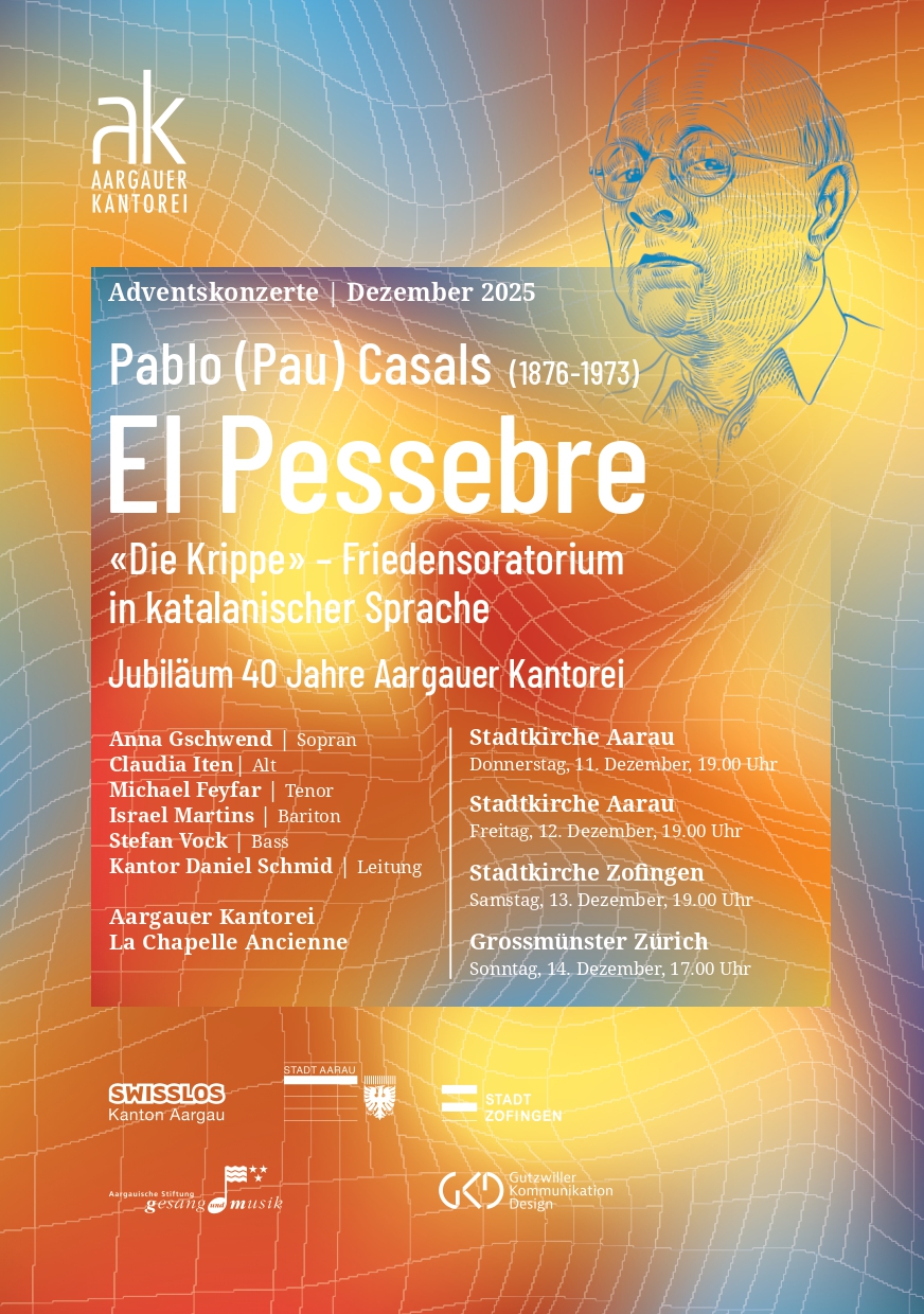 Unter der unter der Leitung von Daniel Schmid der Aargauer Kantorei und La Chapelle Ancienne kommt das Pablo Casals Krippenspiel zur Aufführung.